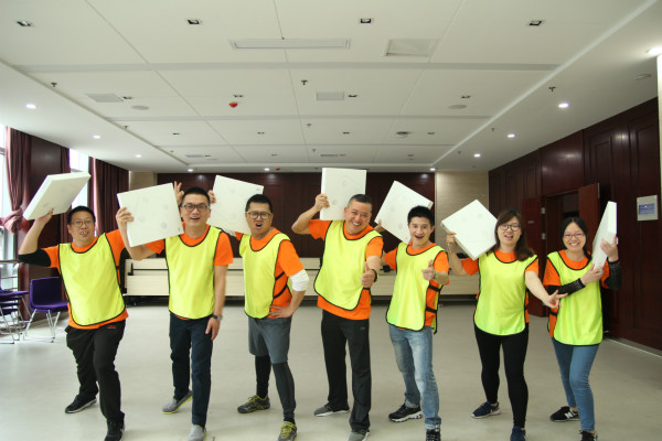 在拓展训练过程中,接力穿衣、急速60秒、合理搭建、不倒森林、指压板接力等一个个精心设计的拓展项目极大地激发了大家的参与兴趣与活动热情。面对着一个个充满挑战的项目,全体队员迎难而上,大胆挑战自我,队员之间相互鼓励,集思广益,团结协作,用思考、汗水在同心协力中成功地完成了各个拓展项目的挑战,尽情享受着成功的喜悦。通过整个拓展训练,全体队员进一步深刻体会到了工作中团队信任、有效沟通、换位思考、领导力、执行力和团队协作等管理艺术的重要性。