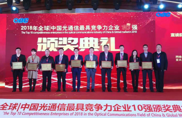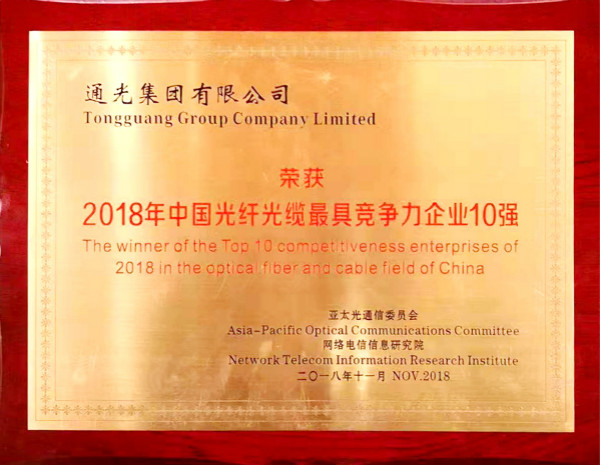 本届论坛以“互联万物 5G 智享未来”为主题,聚集了来自政府部门、电信运营商、研究机构和高等院校的行业领袖及专家,是中国光通信领域一次难得的参与面广、代表性强、影响力大的高水准论坛会议。通光集团凭借在全国范围内过硬的产品质量、先进的技术水平以及强大的综合实力等优势荣膺“2018年中国光纤光缆最具竞争力企业10强”, 得到了国内外光通信行业企业一致的认可和高度的赞誉。