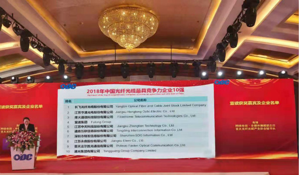 通光集团成功入选“2018年中国光纤光缆最具竞争力企业10强”